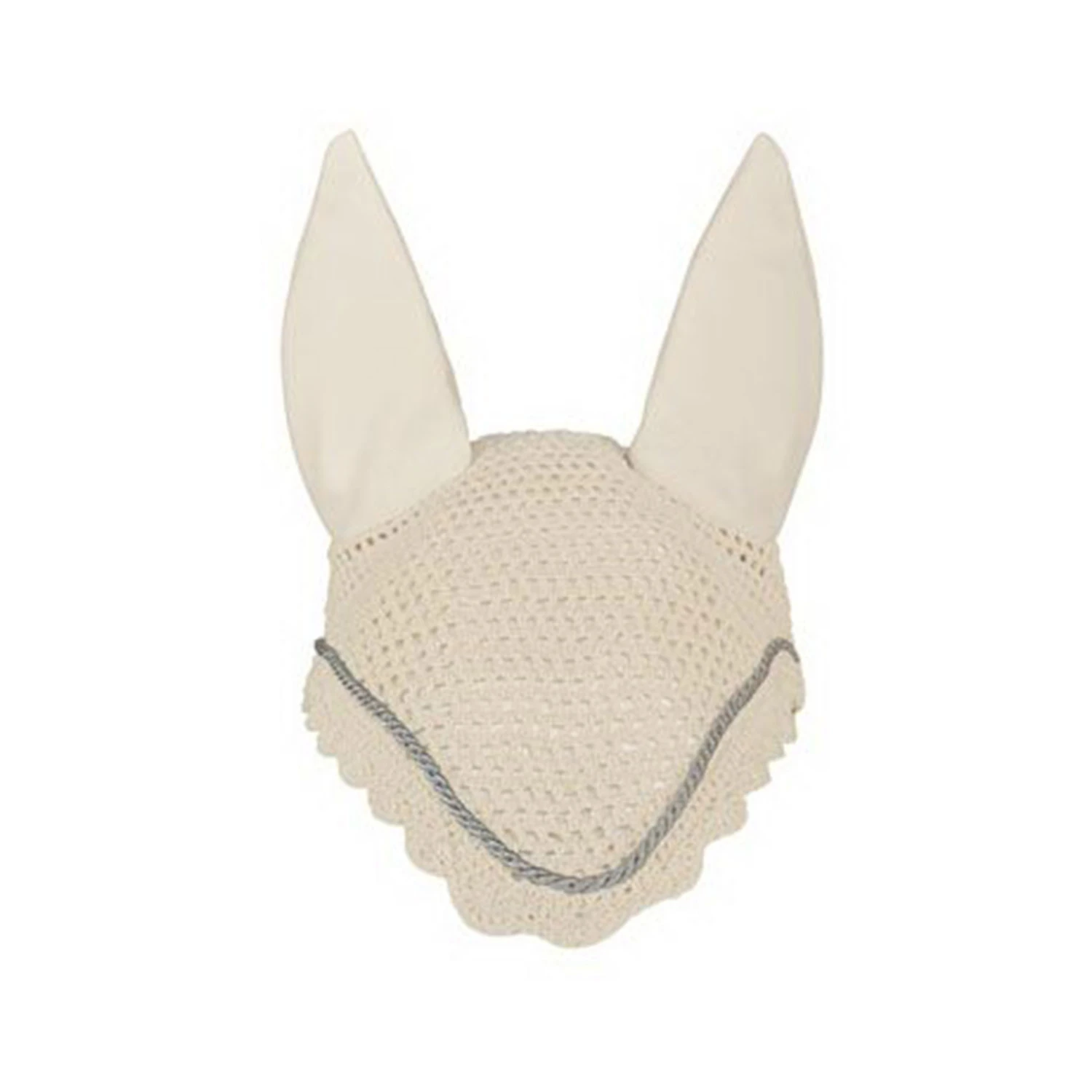 Der gehäkelte Fliegenkopfschutz mit elastischen Ohren bietet nicht nur im Sommer Schutz vor Lästlingen, sondern bildet in Kombination mit der umlaufenden Kordel eine harmonische Einheit zum Kombinieren.
