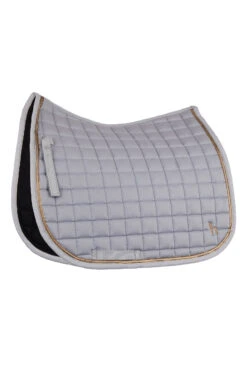 Die Horze Munich Schabracke hat einen umlaufenden Bronzestreifen, der ein auffälliges Detail darstellt. Die quadratische Steppung sorgt für Komfort unter dem Sattel, und das schnelltrocknende Futter ist atmungsaktiv und feuchtigkeitstransportierend. Stilvolle Farben werten dein saisonales Sattelzeug auf. Kombiniere sie mit dem Horze Munich Stirnriemen für einen kompletten Look!
