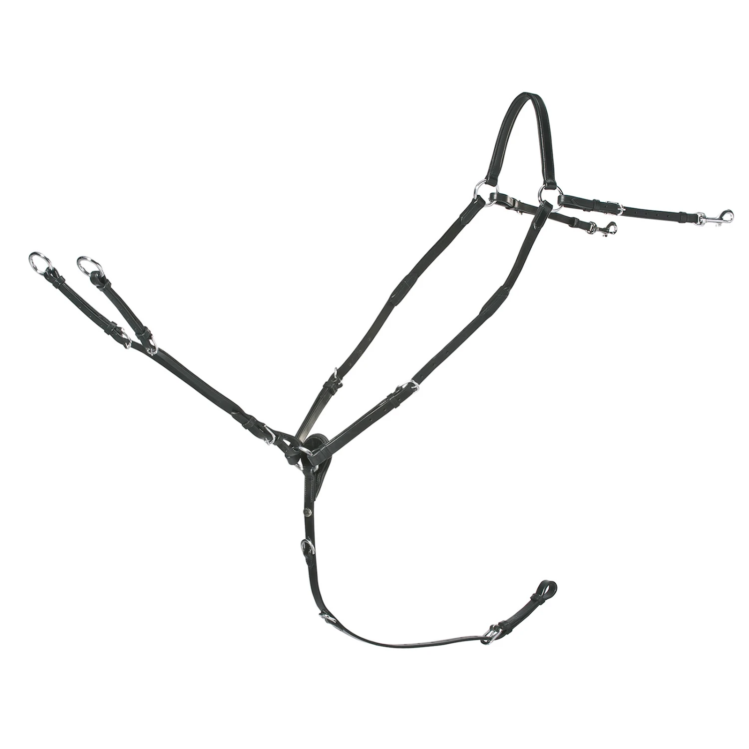 Ein filigraner Hingucker: RACE II ist besonders schmal geschnitten. Hergestellt aus hochwertigem englischem Leder bietet dieses Vorderzeug eine besonders gute Passform durch großzügige, elastische Seiteneinsätze und die flexiblen Verstellmöglichkeiten aller Einzelteile. Karabiner-Schnallen erlauben außerdem eine schnelle Befestigung am Sattel.