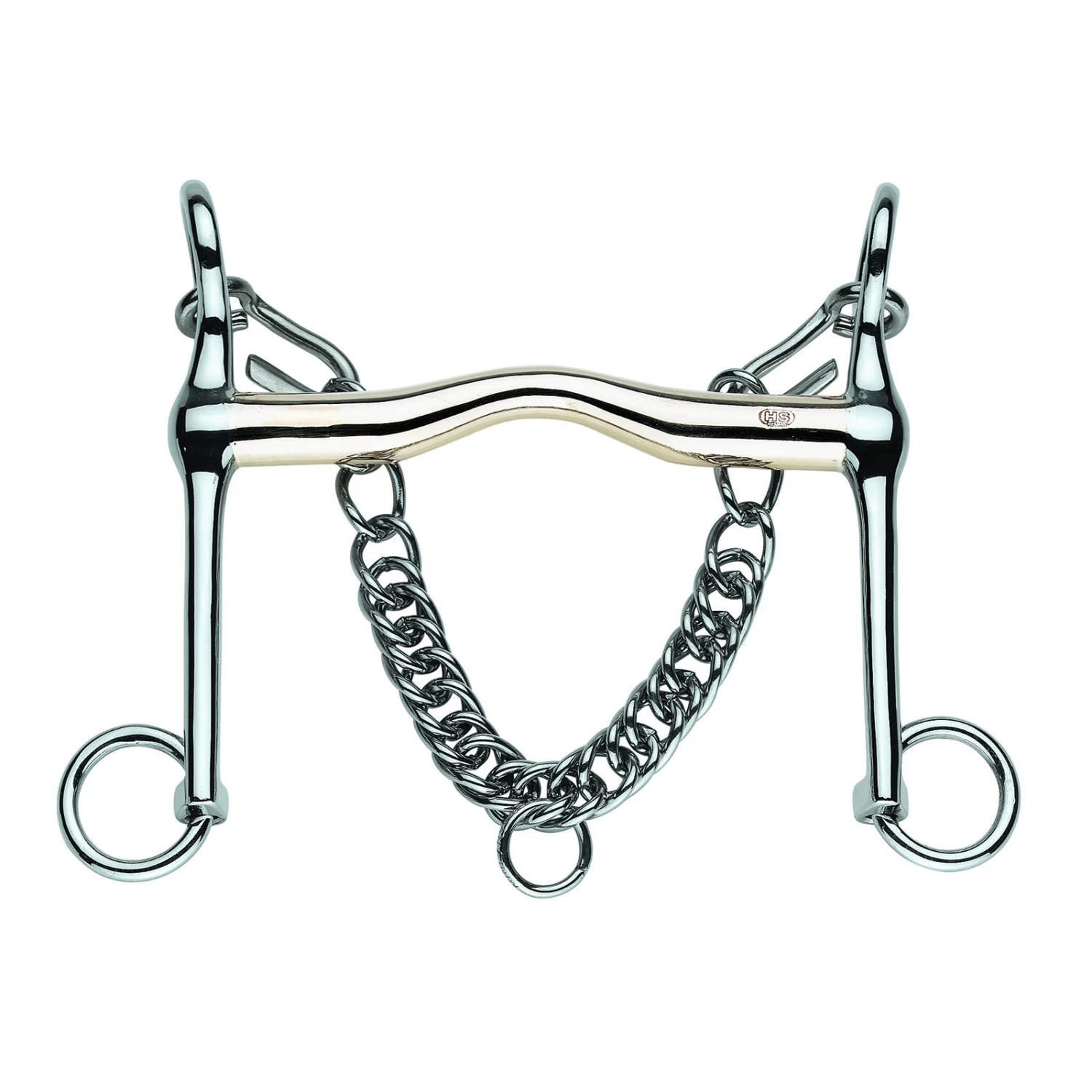 Alle Übergänge sind weich, so dass im Pferdemaul kein Druck entstehen kann. Kandare mit flacher Stange, die kleinen, schmalen Zungen Platz einräumt ohne in den sensiblen Gaumen zu drücken. Das Mundstück legt sich in einem weichen Bogen über die Zunge.